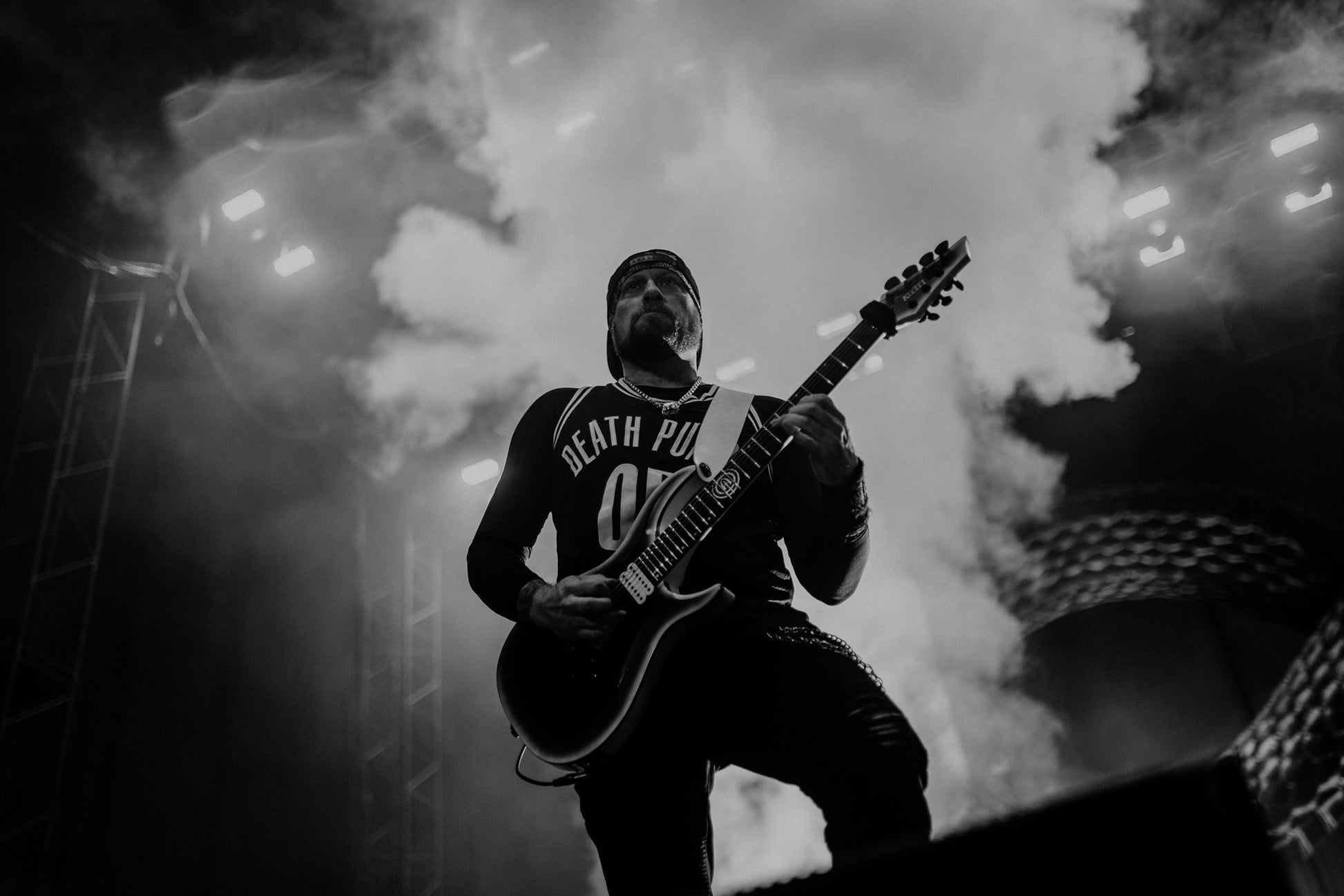 This one of a kind, unique vest style jersey has been worn by Andy James on stage playing with Five Finger Death Punch.